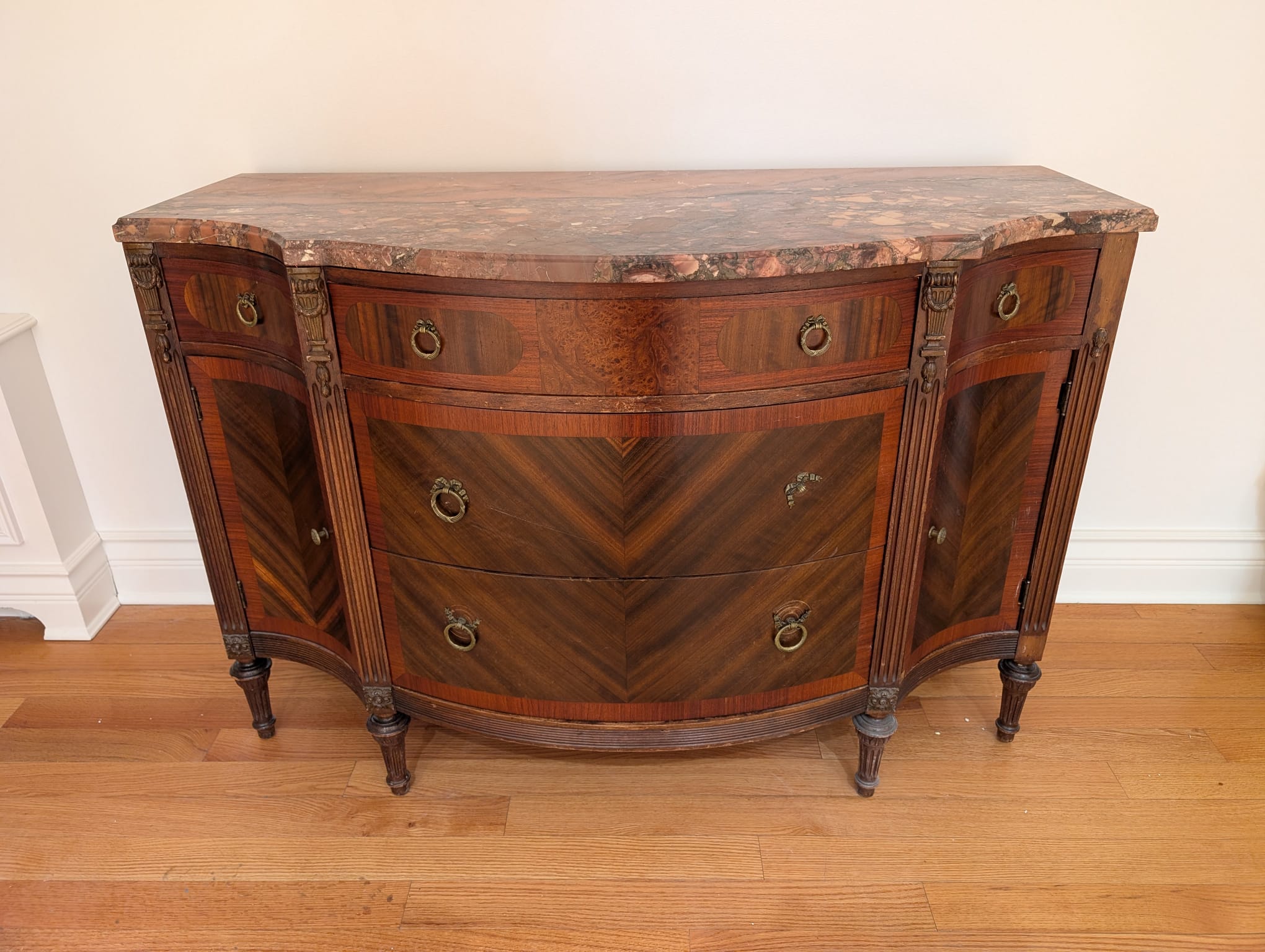 antique mahogany solid chest with marble top. Purchased at antique show.