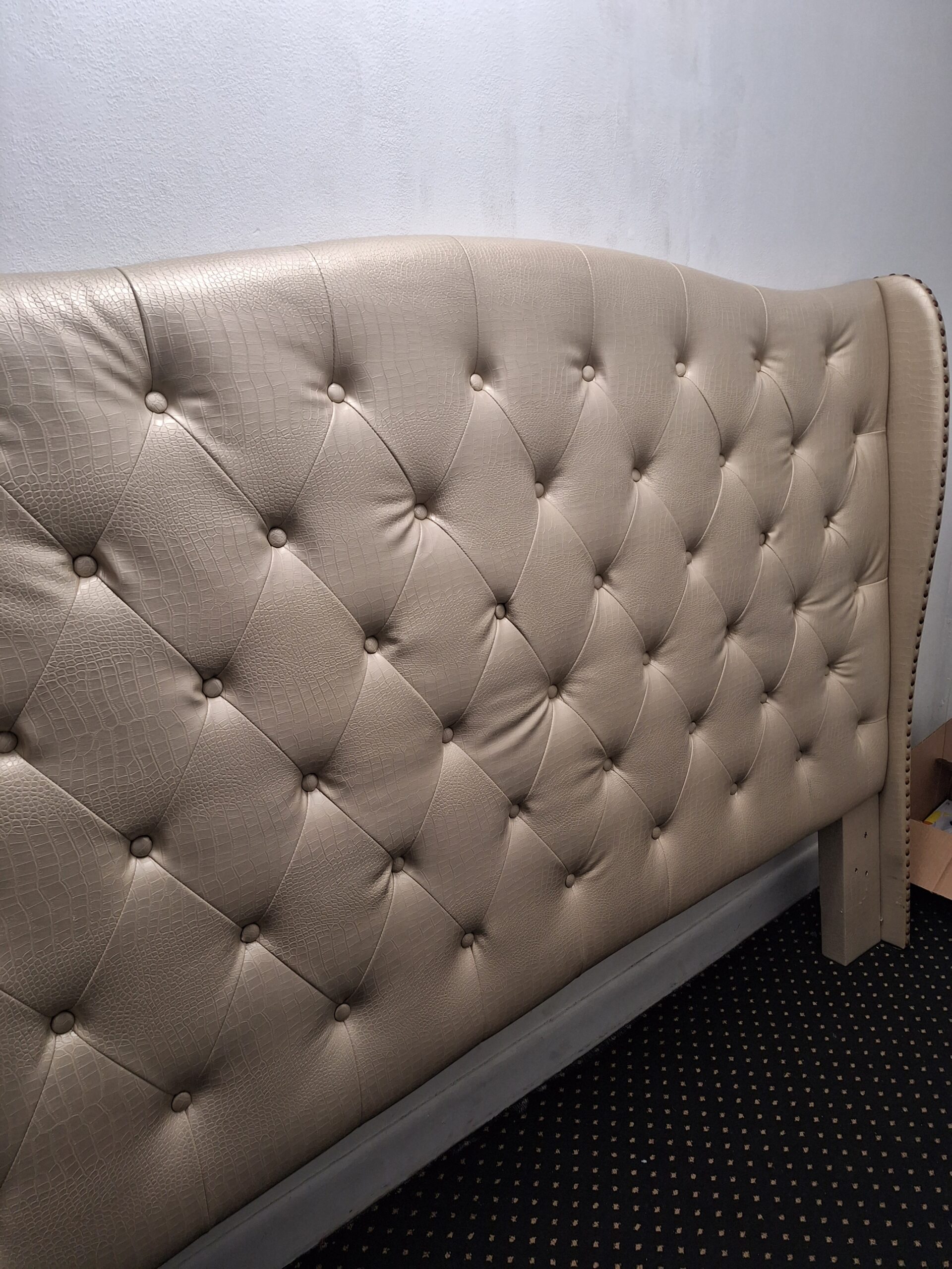 Gorgeous King size headboard. Leather look with crocodile texture. Champagne color. Still looks brand-new. A Solid piece. Height 62 inch.