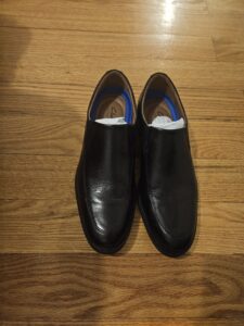 Beautiful Clarks Men's 7.5 Leather Step-in shoes. It's narrow or runs a bit small, so it doesn't fit me and can't return anymore. Wore just once.